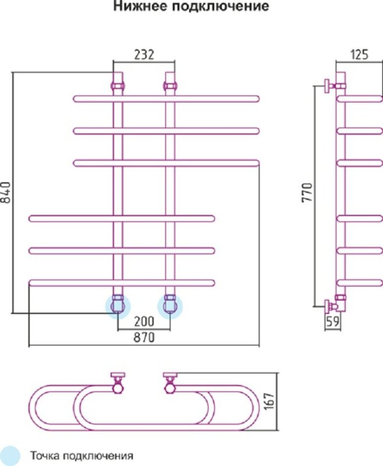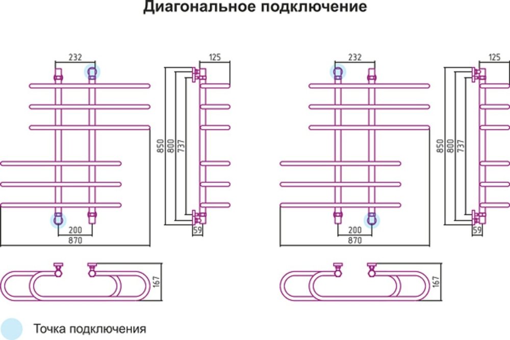- Подключение: диагональное / нижнее