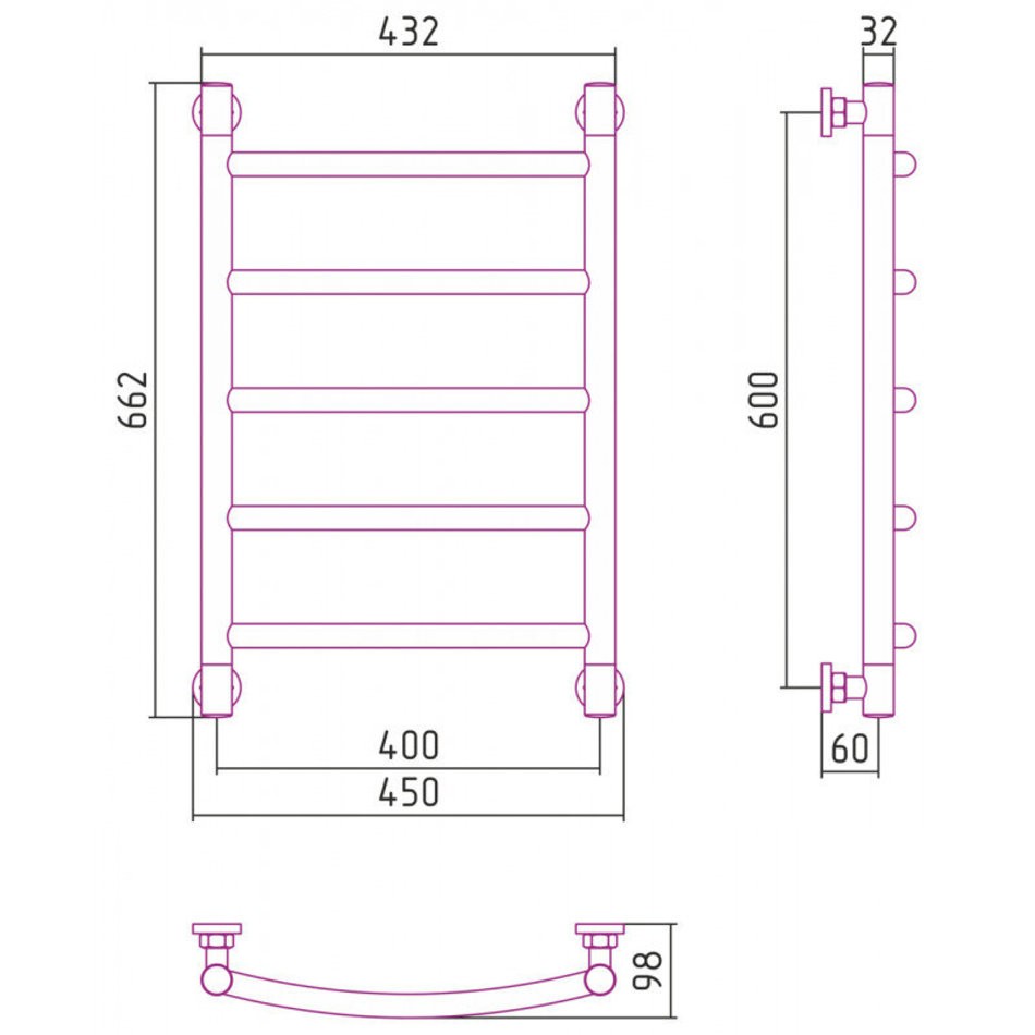 Полотенцесушитель водяной Сунержа Галант+ 071-0200-6040, высота 60 см, ширина 40 см, универсальное подключение, цвет сатин