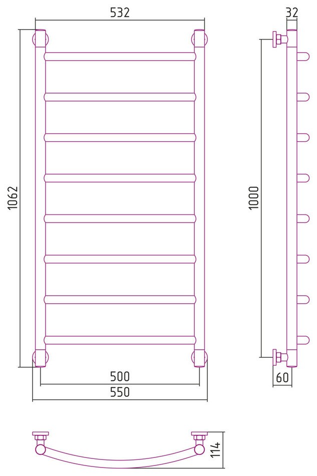 - Внешние габариты (высота х ширина х глубина) (мм) 1062x550x114