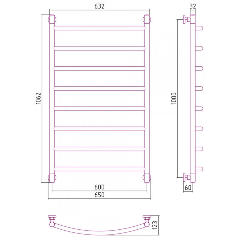 - Внешние габариты (высота х ширина х глубина) (мм) 1062х650x123