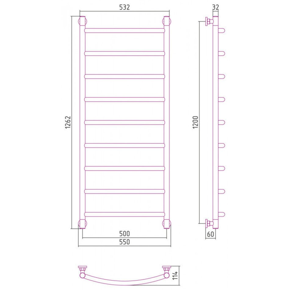 Полотенцесушитель водяной Сунержа Галант+ 15-0200-1250, высота 120 см, ширина 50 см, универсальное подключение, цвет тёмный титан муар