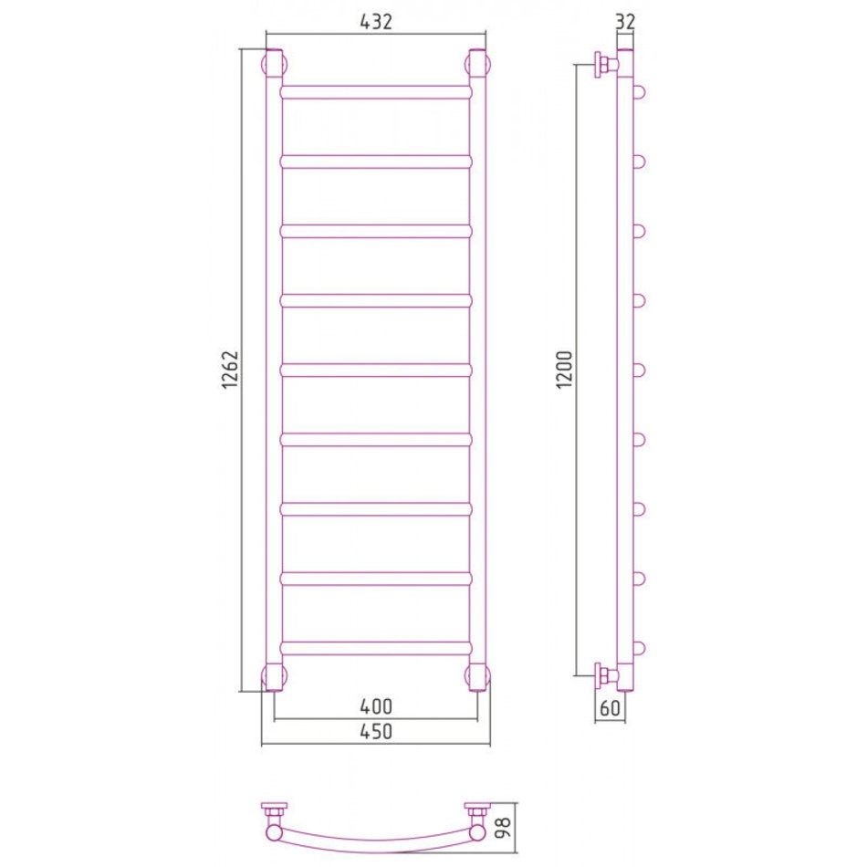 Полотенцесушитель водяной Сунержа Галант+ 31-0200-1240, высота 120 см, ширина 40 см, универсальное подключение, цвет матовый черный