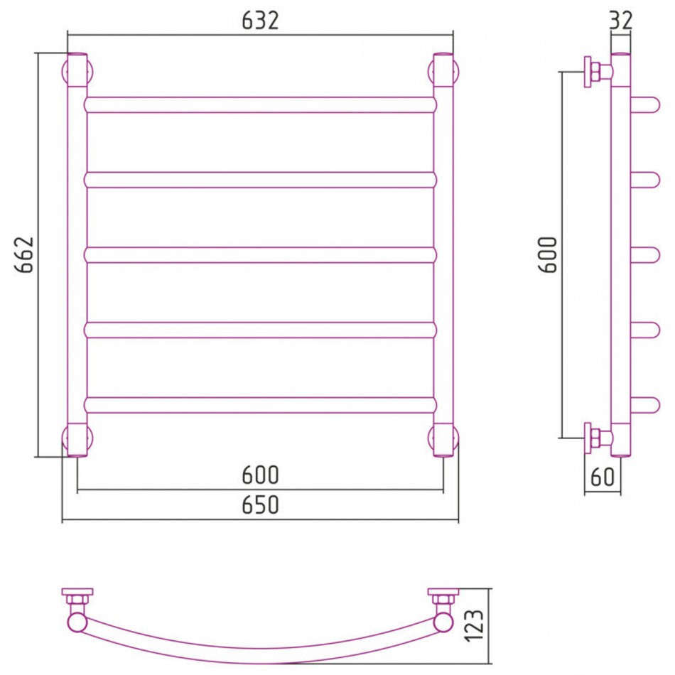 Полотенцесушитель водяной Сунержа Галант+ 31-0200-6060, высота 60 см, ширина 60 см, универсальное подключение, цвет матовый черный