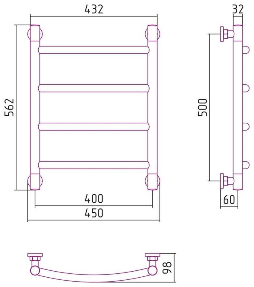 - Внешние габариты (высота х ширина х глубина) (мм) 562х450x98