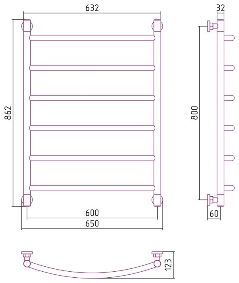 - Внешние габариты (высота х ширина х глубина) (мм) 862х650x123