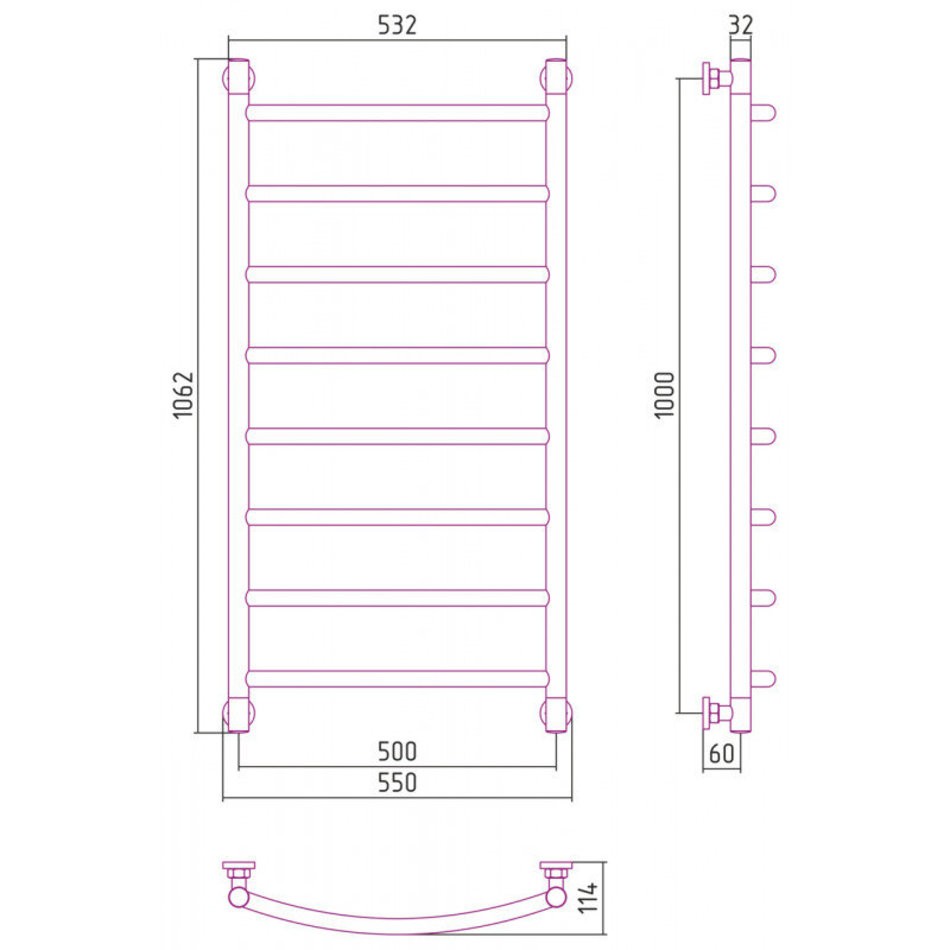 Полотенцесушитель водяной Сунержа Галант+, высота 100 см, ширина 50 см, универсальное подключение, цвет матовая шампань, 022-0200-1050