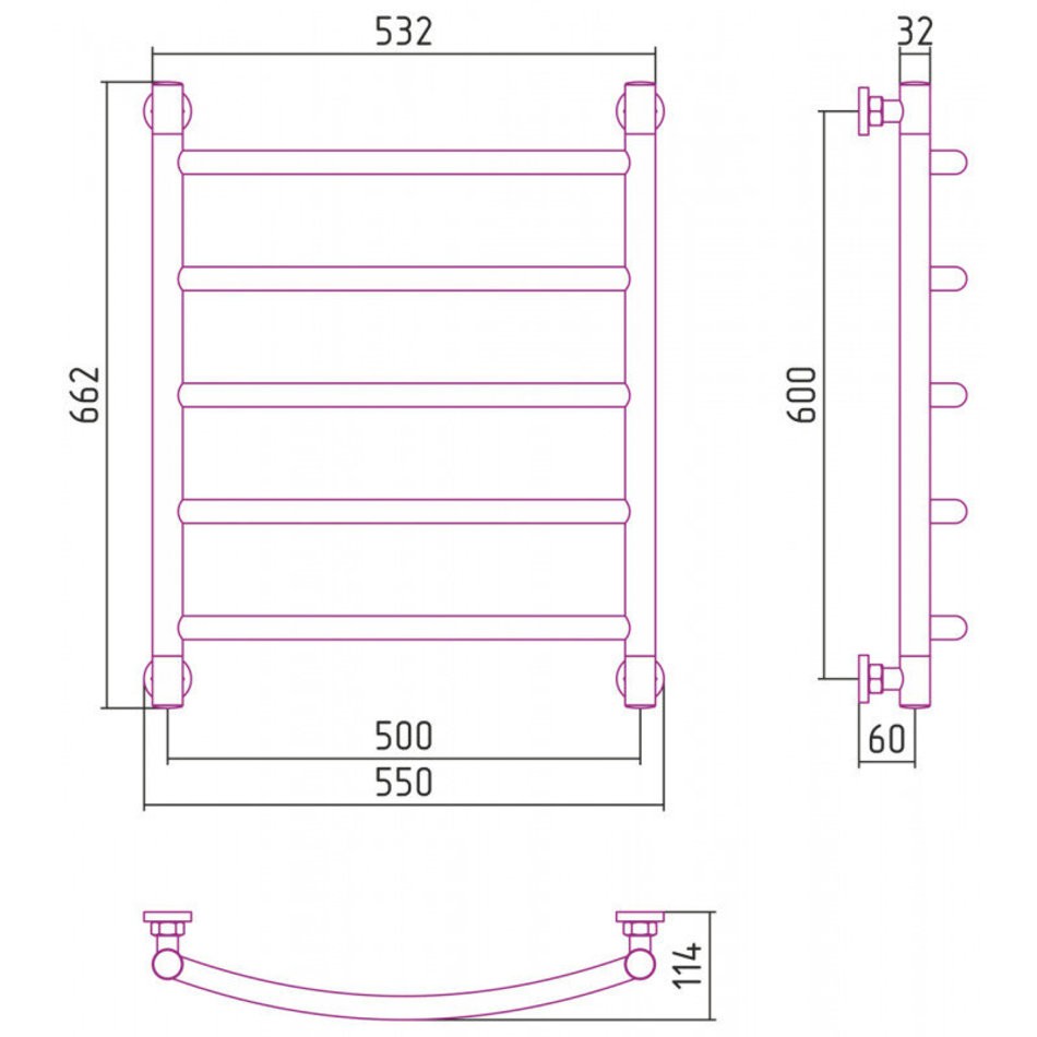 Полотенцесушитель водяной Сунержа Галант+, высота 60 см, ширина 50 см, универсальное подключение, цвет матовое золото, 032-0200-6050