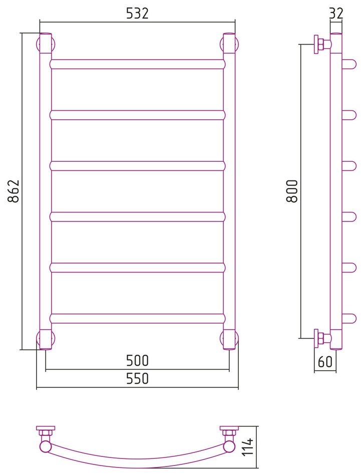 - Полотенцесушитель упакован в полиэтиленовый пакет и коробку из гофрокартона.