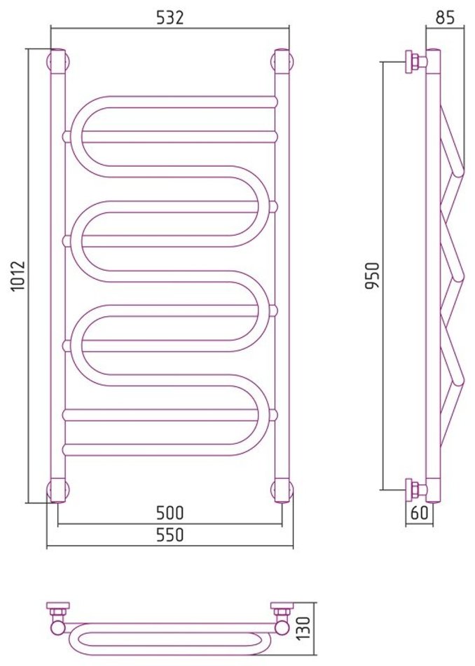 Полотенцесушитель водяной Сунержа Иллюзия+ 95 х 50 см, 00-0210-9550, хром