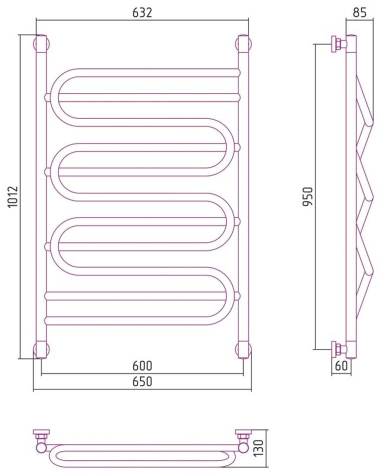 Полотенцесушитель водяной Сунержа Иллюзия+ 95 х 60 см, 00-0210-9560, хром