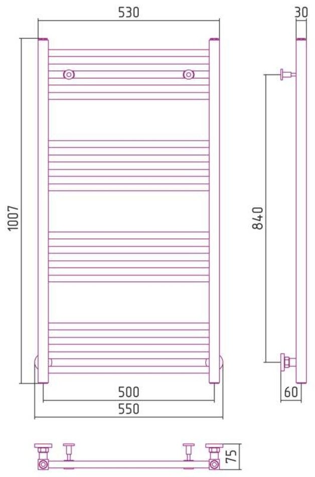 Полотенцесушитель водяной Сунержа Модус 1000x500, ширина 53 см, высота 100.7 см, золото матовое, 032-0250-1050