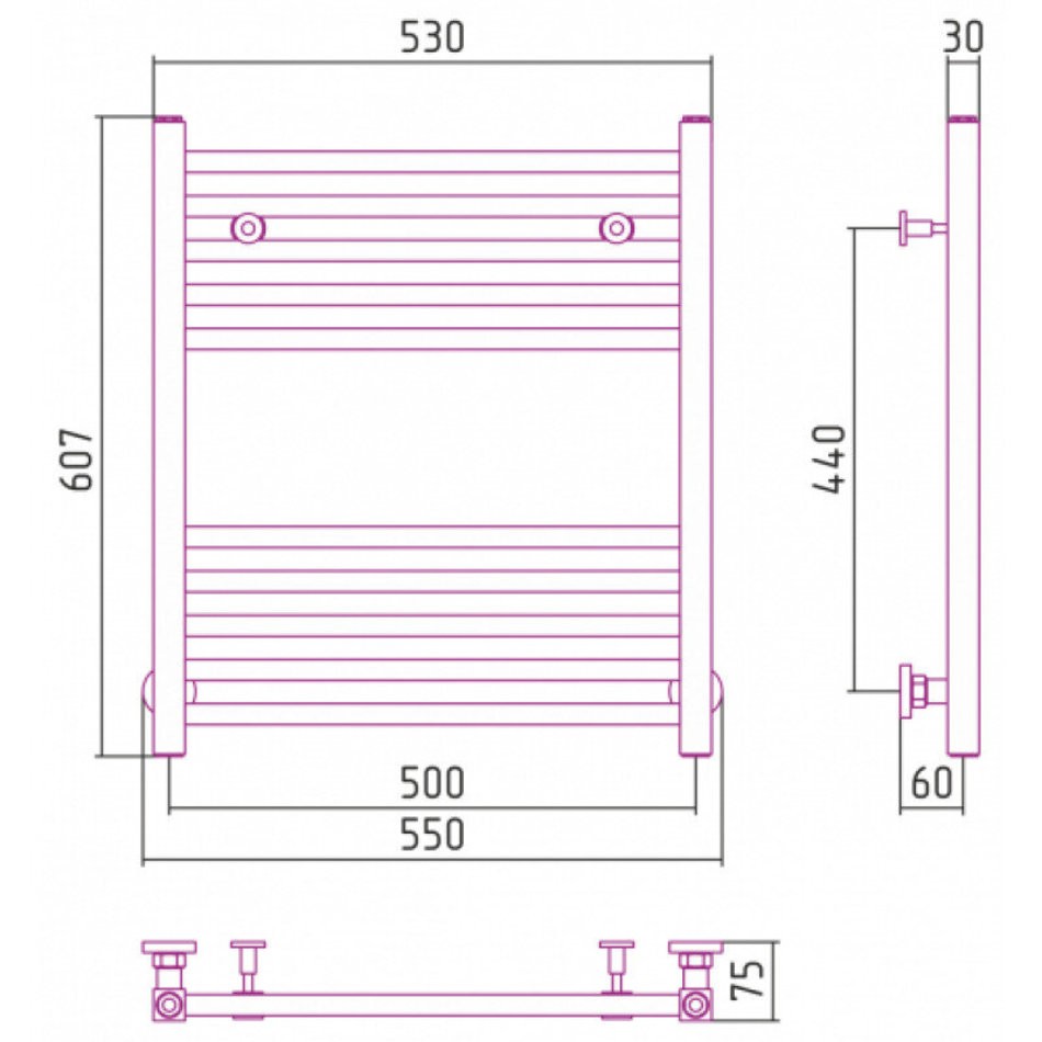 Полотенцесушитель водяной Сунержа Модус 31-0250-6050, высота 60 см, ширина 50 см, универсальное подключение, цвет матовый черный