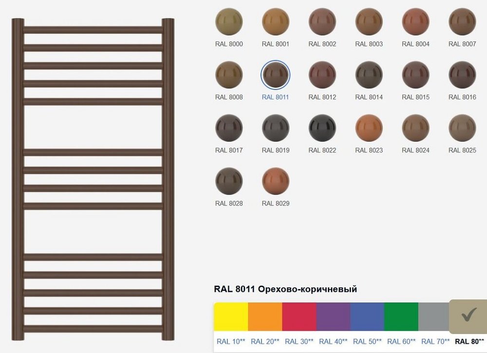Полотенцесушитель водяной Сунержа Модус 8011-0250-8050, высота 80 см, ширина 50 см, универсальное подключение, цвет орехово-коричневый