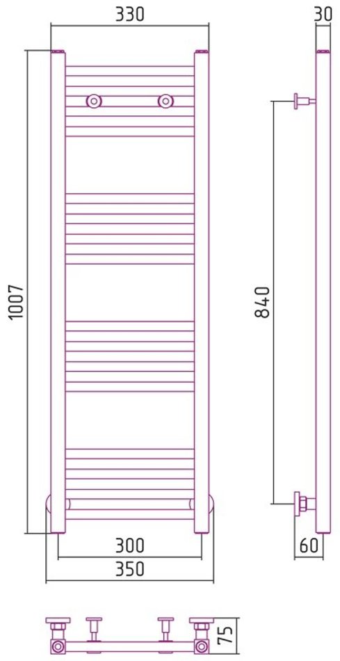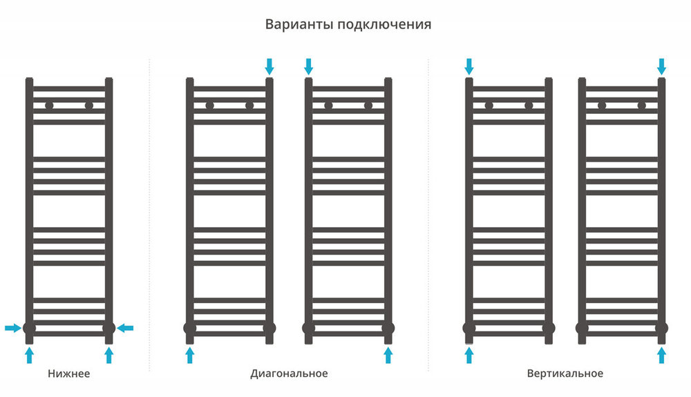- Межосевое расстояние: нижнее подключение - 30 см,боковое-100см