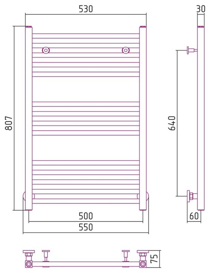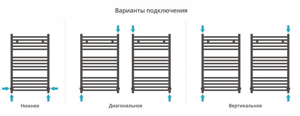 - Межосевое расстояние: для бокового подключения - 80 см, нижнее подключение - 50 см