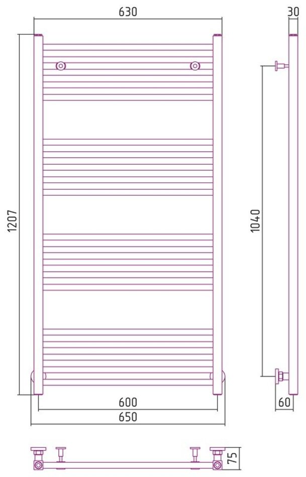 Полотенцесушитель водяной Сунержа Модус, ширина 60 см высота 120 см, универсальное подключение, хром, 00-0250-1260