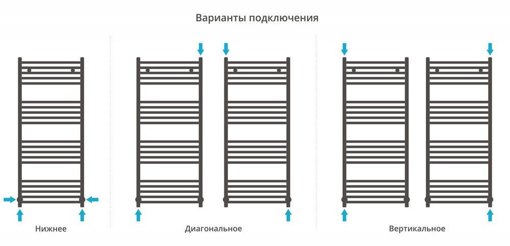 - Межосевое расстояние: для бокового подключения - 120 см, нижнее подключение - 60 см