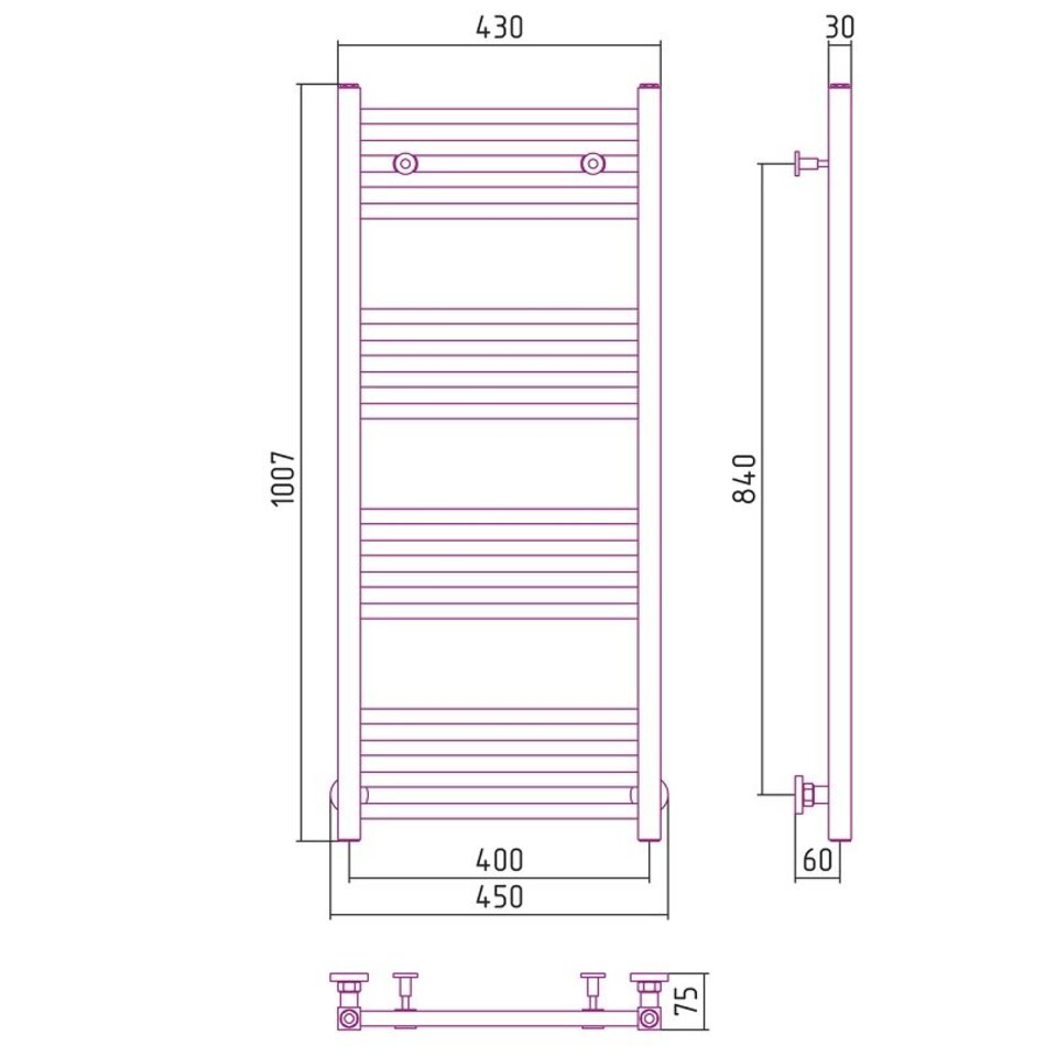 Полотенцесушитель водяной Сунержа Модус, высота 100 см, ширина 40 см, цвет шампань, 020-0250-1040