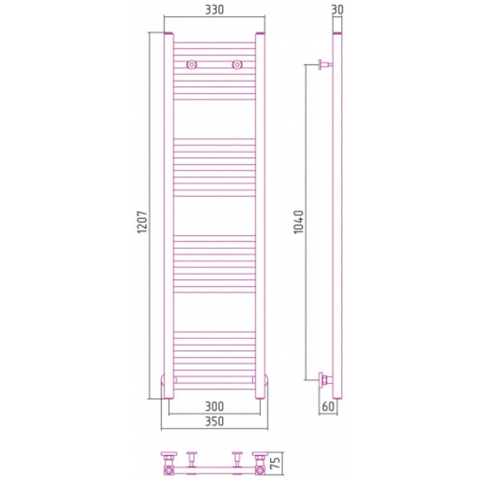 Полотенцесушитель водяной Сунержа Модус, высота 120 см, ширина 30 см, универсальное подключение, цвет золото, 03-0250-1230