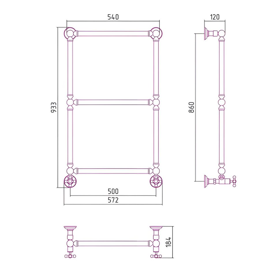 Полотенцесушитель водяной Сунержа Ренессанс 1304 071-0280-8650, высота 86 см, ширина 50 см, нижнее подключение 50 см, цвет сатин