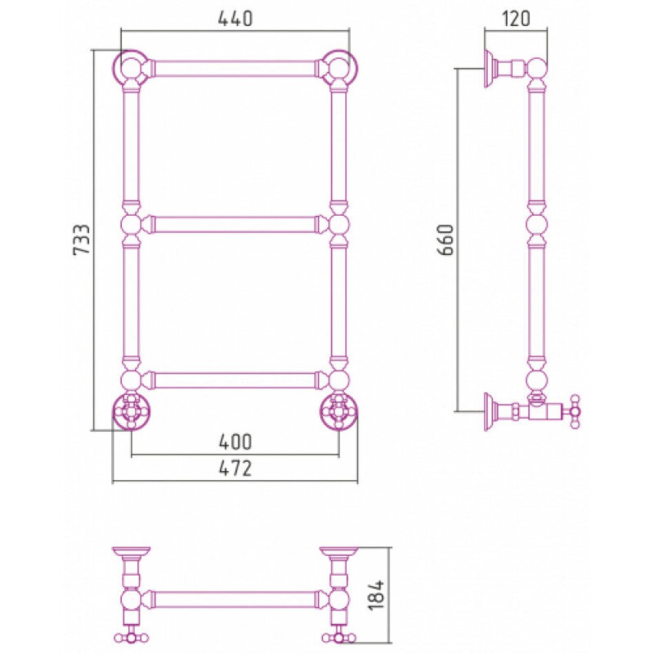 Полотенцесушитель водяной Сунержа Ренессанс 1304 15-0280-6640, высота 66 см, ширина 40 см, нижнее подключение 40 см, цвет тёмный титан муар