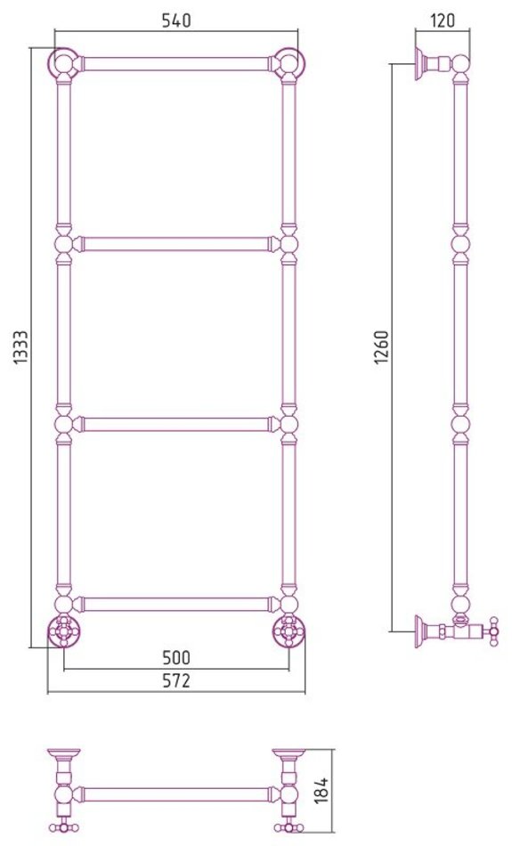 Полотенцесушитель водяной Сунержа Ренессанс 1304, ширина 50 см высота 125 см, нижнее подключение, хром, 00-0280-1250