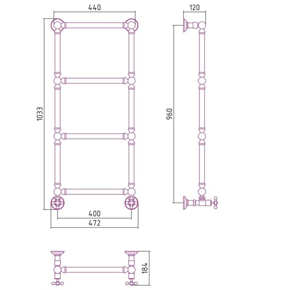 Полотенцесушитель водяной Сунержа Ренессанс 1304, высота 96 см, ширина 40 см, цвет шампань, 020-0280-9640