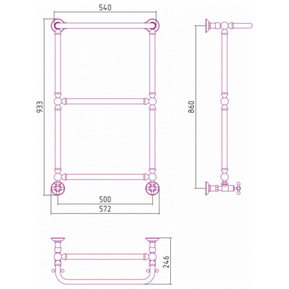 Полотенцесушитель водяной Сунержа Ренессанс 1386 15-0281-8650, высота 86 см, ширина 50 см, нижнее подключение 50 см, с полкой, цвет тёмный титан муар
