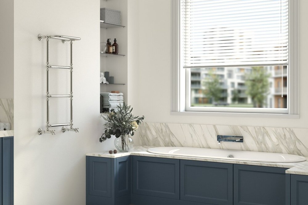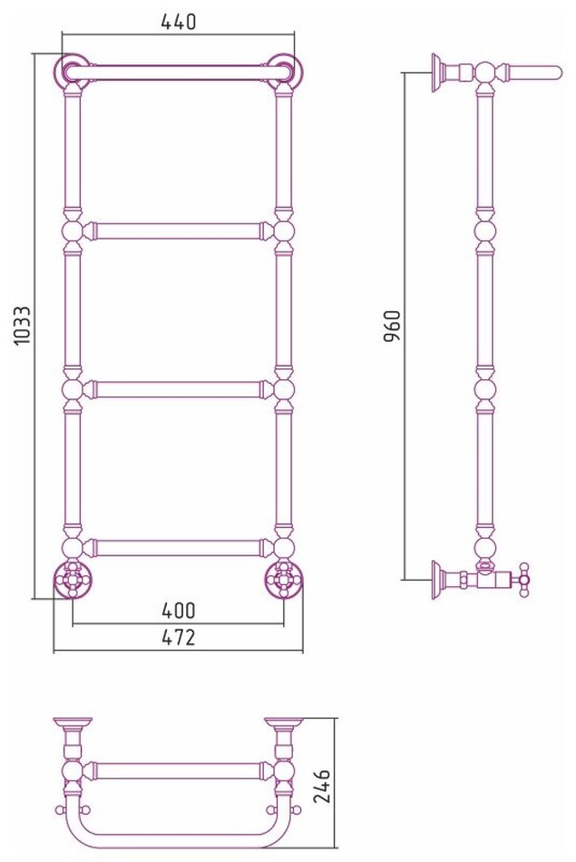 Полотенцесушитель водяной Сунержа Ренессанс 1386, ширина 40 см высота 95 см, с полкой, нижнее подключение, хром, 00-0281-9640