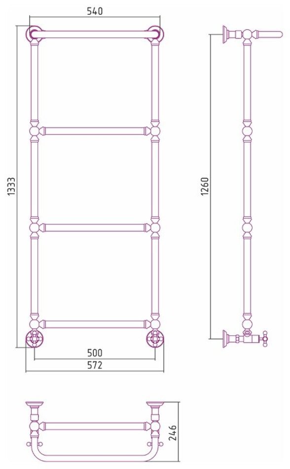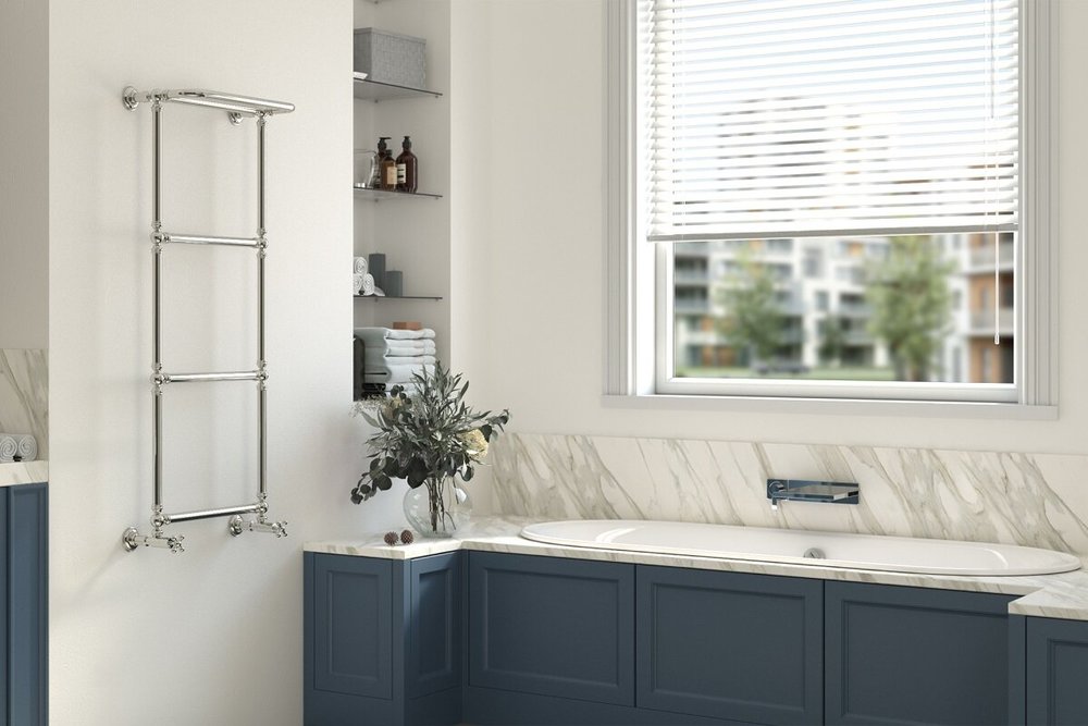 Полотенцесушитель водяной Сунержа Ренессанс 1386, ширина 50 см высота 125 см, с полкой, нижнее подключение, хром, 00-0281-1250