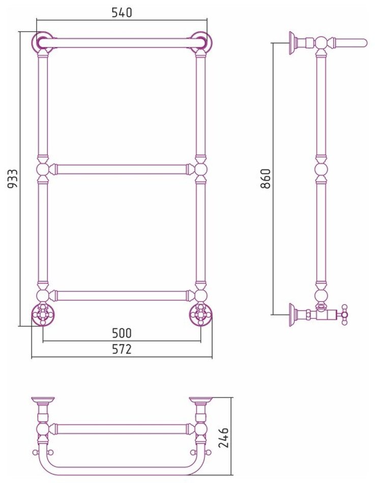 Полотенцесушитель водяной Сунержа Ренессанс 1386, ширина 50 см высота 85 см, с полкой, нижнее подключение, хром, 00-0281-8650