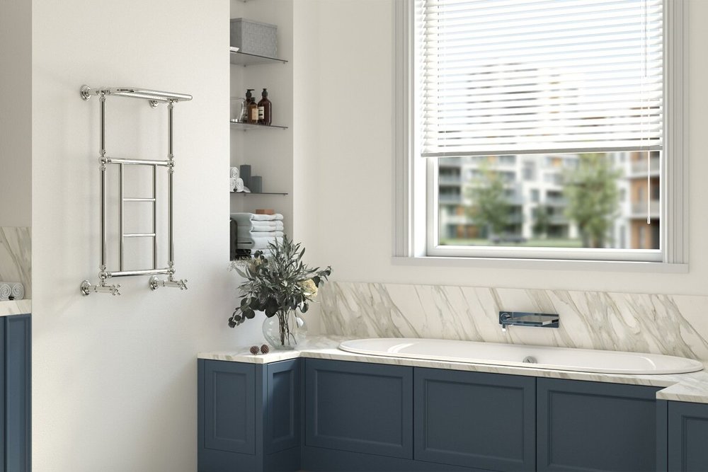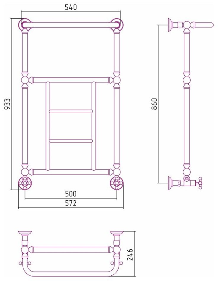 Полотенцесушитель водяной Сунержа Ренессанс 1452, ширина 50 см высота 85 см, с полкой, нижнее подключение, хром, 00-0282-8650