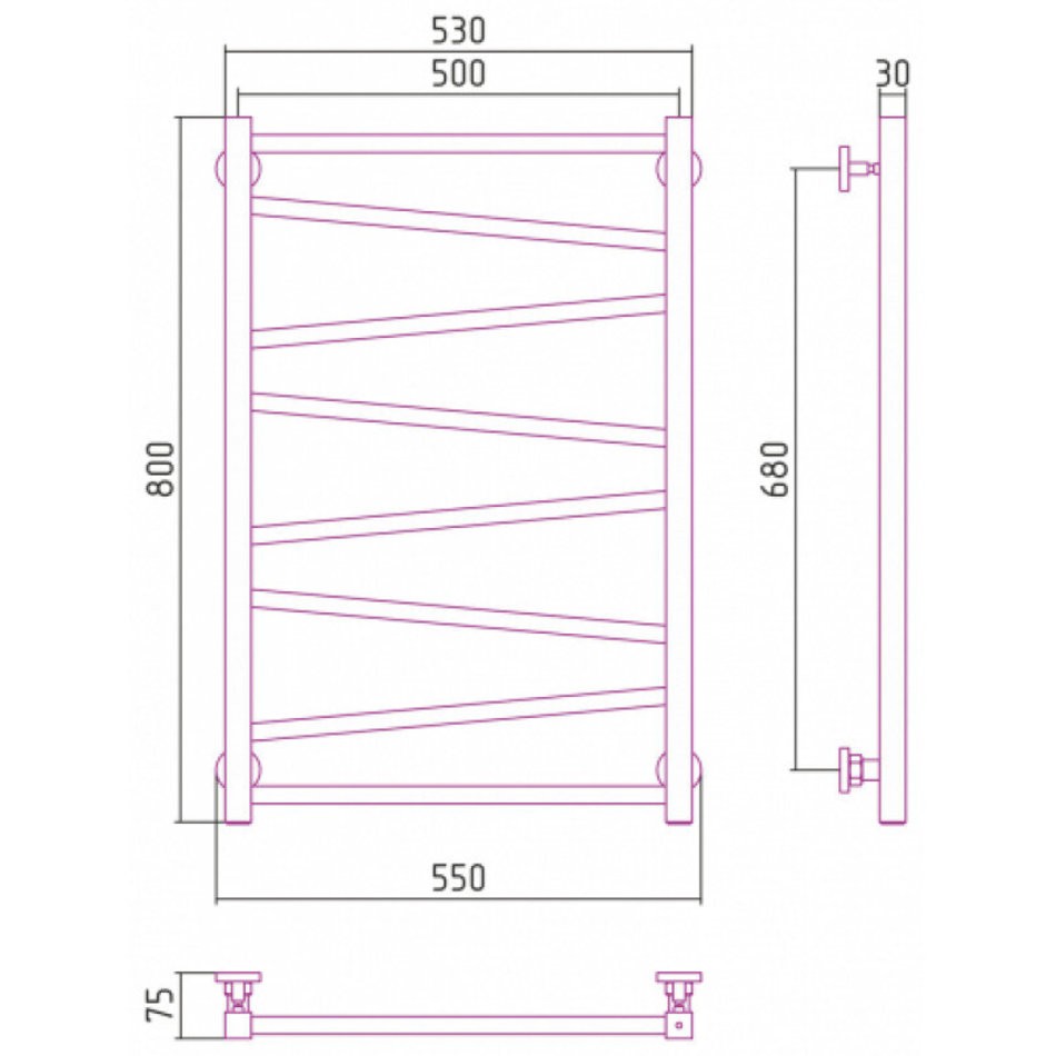 Полотенцесушитель водяной Сунержа Сирокко 071-0253-8050, высота 80 см, ширина 50 см, нижнее подключение 50 см, цвет сатин