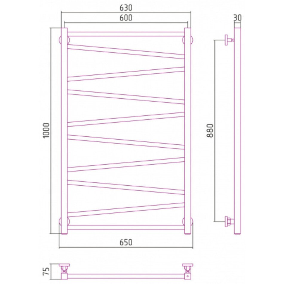Полотенцесушитель водяной Сунержа Сирокко 15-0253-1060, высота 100 см, ширина 60 см, нижнее подключение, цвет тёмный титан муар