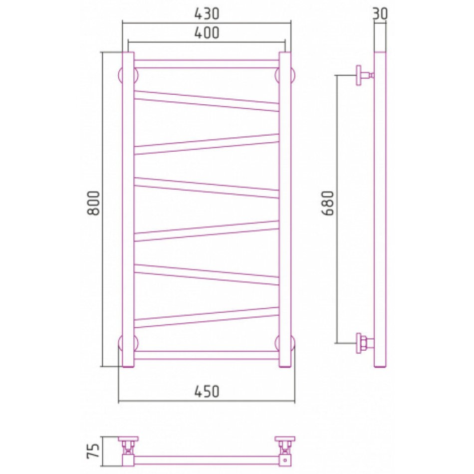 Полотенцесушитель водяной Сунержа Сирокко 31-0253-8040, высота 80 см, ширина 40 см, нижнее подключение, цвет матовый черный