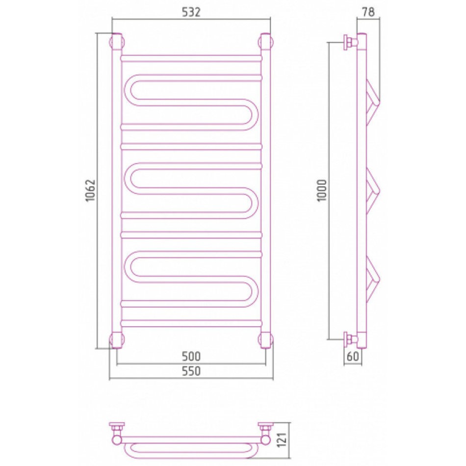 Полотенцесушитель водяной Сунержа Элегия+ 12-0205-1050, высота 100 см, ширина 50 см, универсальное подключение, цвет белый