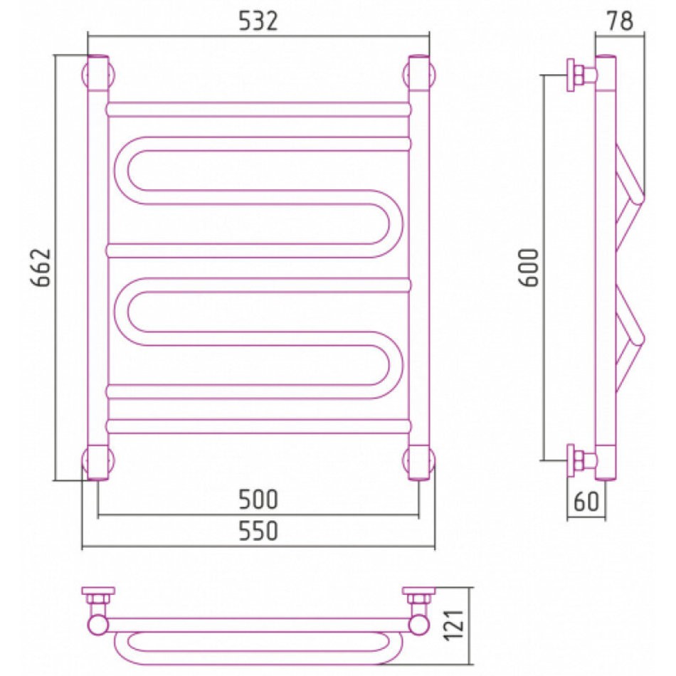 Полотенцесушитель водяной Сунержа Элегия+ 12-0205-6050, высота 60 см, ширина 50 см, универсальное подключение, цвет белый