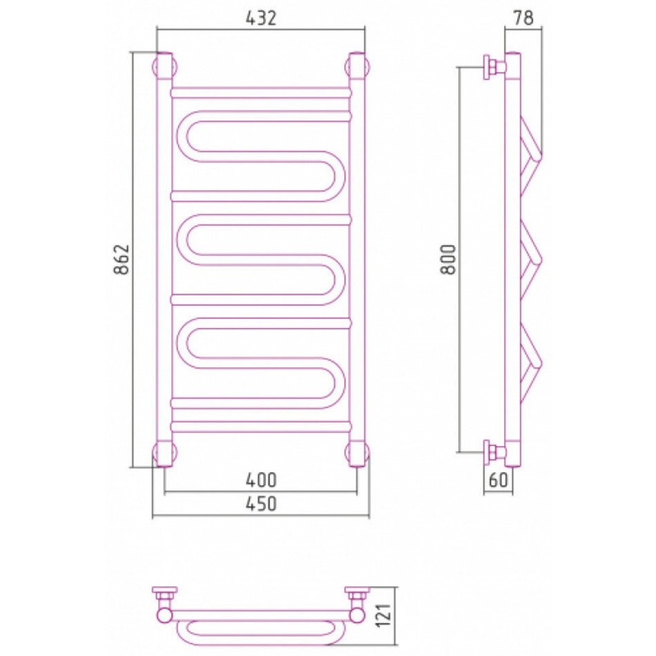 Полотенцесушитель водяной Сунержа Элегия+ 15-0205-8040, высота 80 см, ширина 40 см, универсальное подключение, цвет тёмный титан муар