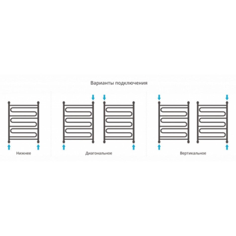 - Межосевое расстояние: для бокового подключения - 80 см, нижнее подключение - 60 см
