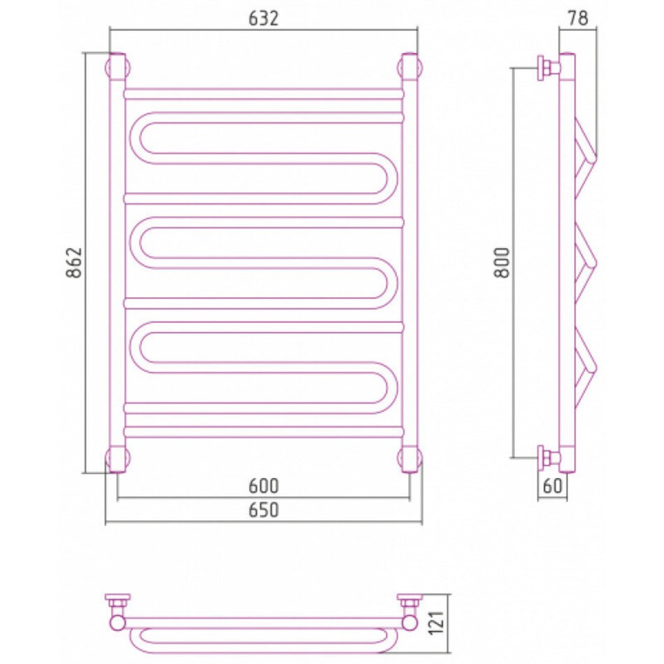 Полотенцесушитель водяной Сунержа Элегия+ 15-0205-8060, высота 80 см, ширина 60 см, универсальное подключение, цвет тёмный титан муар
