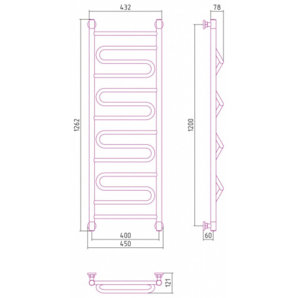 Полотенцесушитель водяной Сунержа Элегия+ 30-0205-1240, высота 120 см, ширина 40 см, универсальное подключение, цвет матовый белый