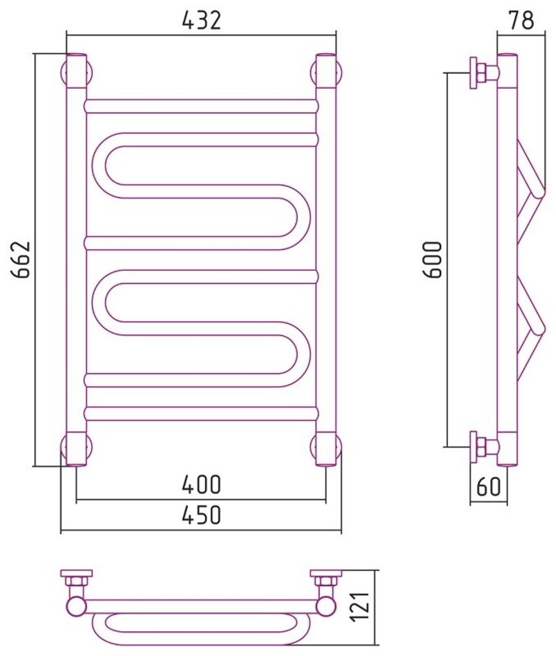 Полотенцесушитель водяной Сунержа Элегия+, ширина 40 см высота 60 см, универсальное подключение, хром, 00-0205-6040