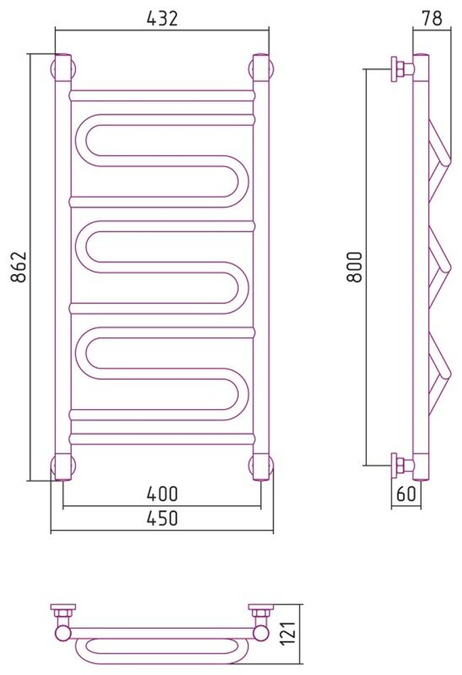 Полотенцесушитель водяной Сунержа Элегия+, ширина 40 см высота 80 см, универсальное подключение, хром, 00-0205-8040