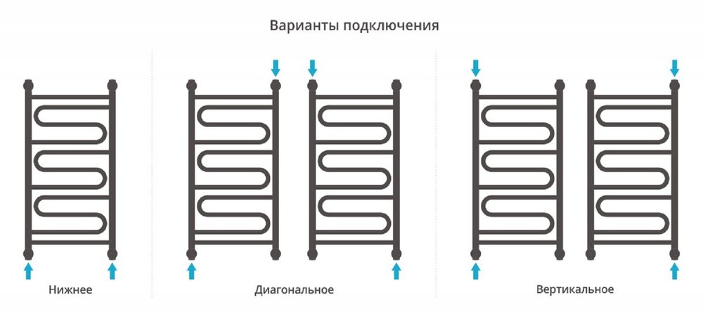 - Межосевое расстояние: для бокового подключения - 80 см, нижнее подключение - 40 см