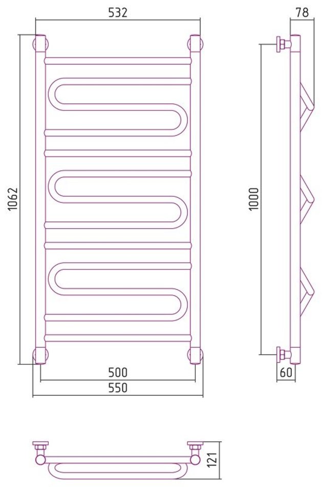 Полотенцесушитель водяной Сунержа Элегия+, ширина 50 см высота 100 см, универсальное подключение, хром, 00-0205-1050
