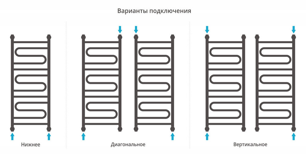 - Межосевое расстояние: для бокового подключения - 100 см, нижнее подключение - 50 см