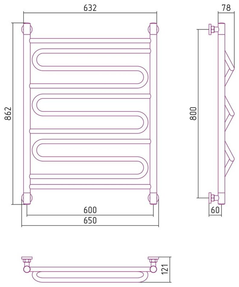 Полотенцесушитель водяной Сунержа Элегия+, ширина 60 см высота 80 см, универсальное подключение, хром, 00-0205-8060