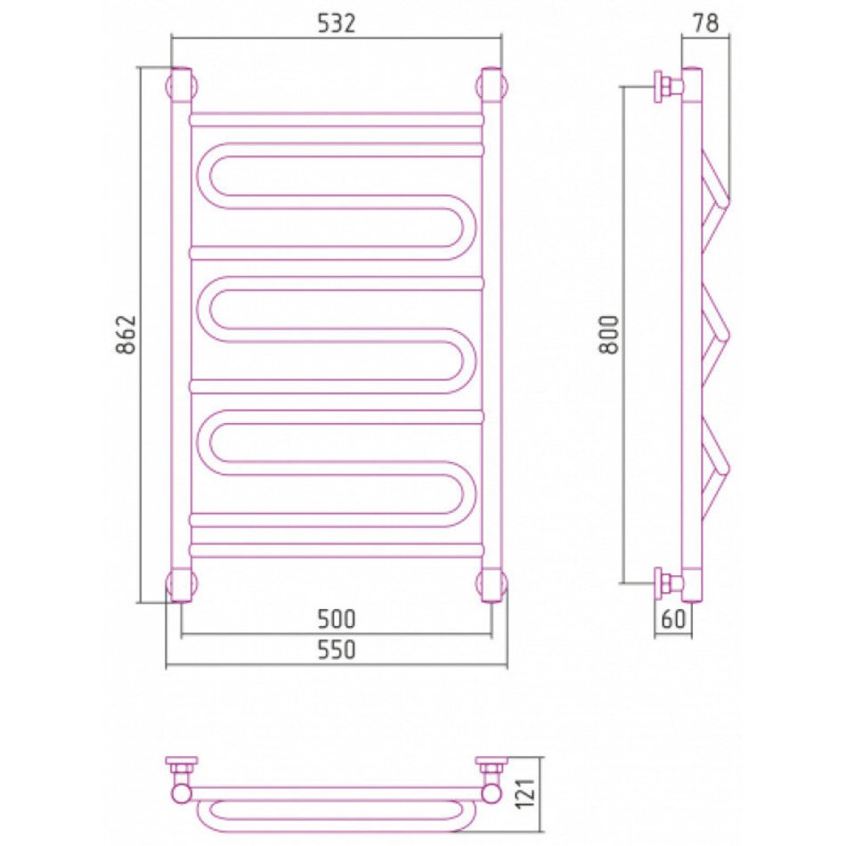 Полотенцесушитель водяной Сунержа Элегия+, высота 80 см, ширина 50 см, универсальное подключение, цвет матовая шампань, 022-0205-8050