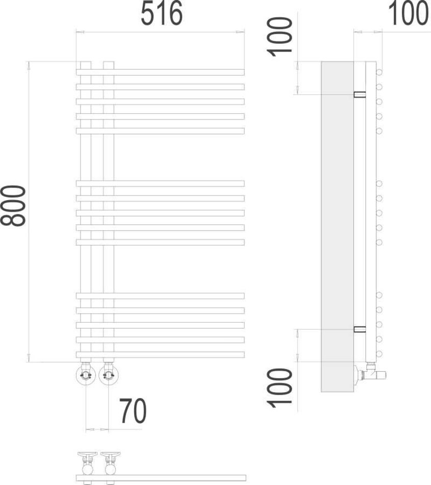 Полотенцесушитель водяной Terminus 4670078530486, ширина 51.6 см, высота 80 см, черный матовый