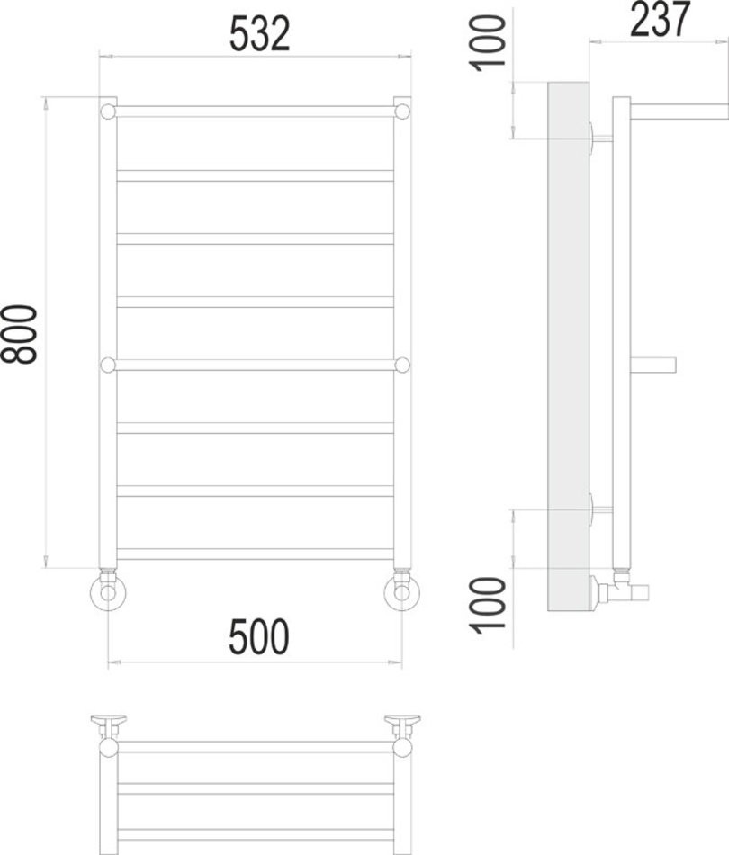 Полотенцесушитель водяной Terminus Анкона 4670078529978, П8 500х800 с полкой, ширина 53.2 см, высота 80 см, хром